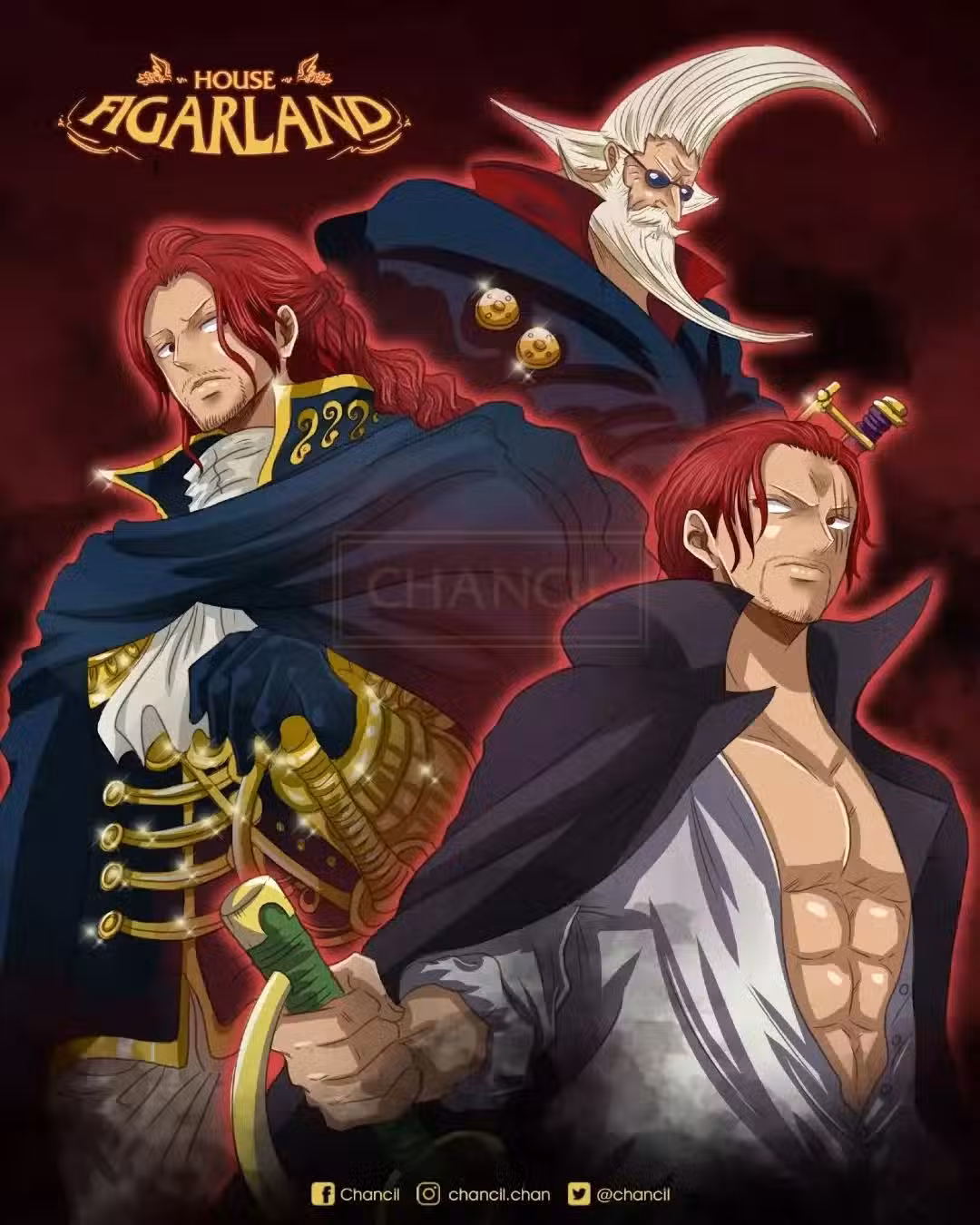 費加蘭德·香克斯,加林聖的次子,三十八年前在神之谷和家人走失,被羅傑海賊團收養。在某年,香克斯曾經回到聖地,後來又放棄天龍人身份,選擇回到「下界」做海賊。
