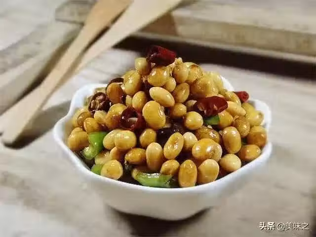 黃豆80g、青椒1個、紅辣椒適量、桂皮1塊、八角3個、花椒適量、香葉適量、鹽適量、白糖少許、香油少許、雞精少許、生抽適量、老抽適量。