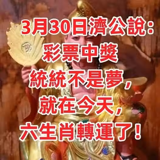 3月30日濟公說:彩票中獎統統不是夢,就在今天六生肖轉運了!