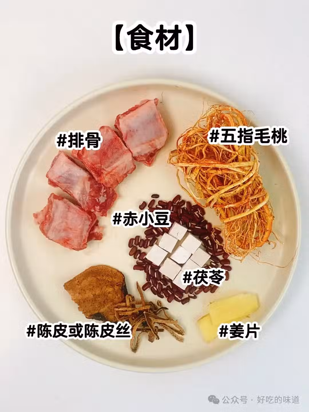2.五指毛桃浸泡1小時,排骨用姜焯水洗凈。