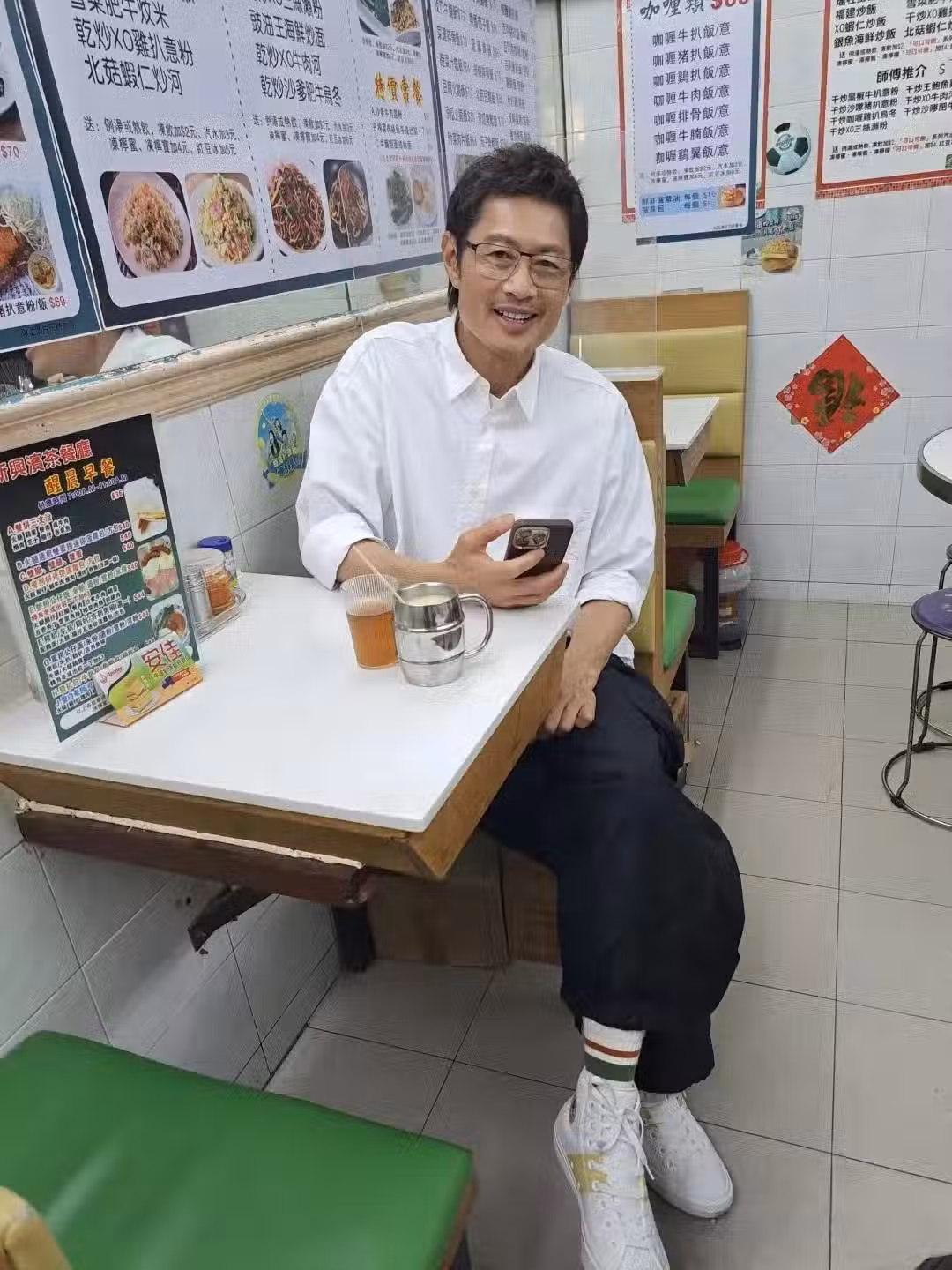 62歲黃德斌在香港,一個人去餐館吃飯,身材健碩,打扮好有男人味