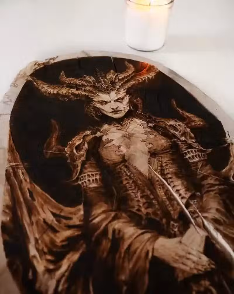 烙畫藝術家創作《暗黑破壞神4》聖休雅瑞之母「莉莉絲」