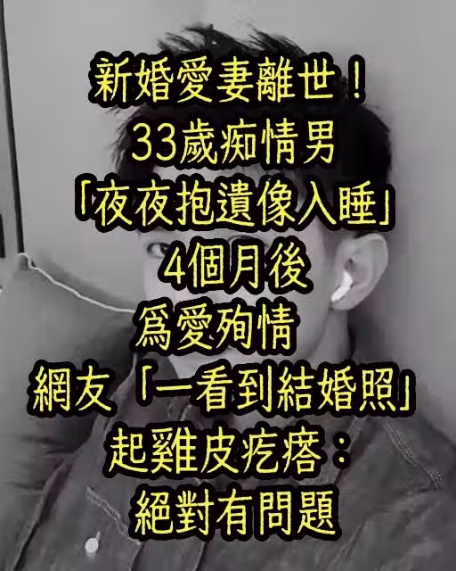新婚愛妻離世!33歲痴情男「夜夜抱遺像入睡」4個月後為愛殉情 網友「一看到結婚照」起雞皮疙瘩:絕對有問題