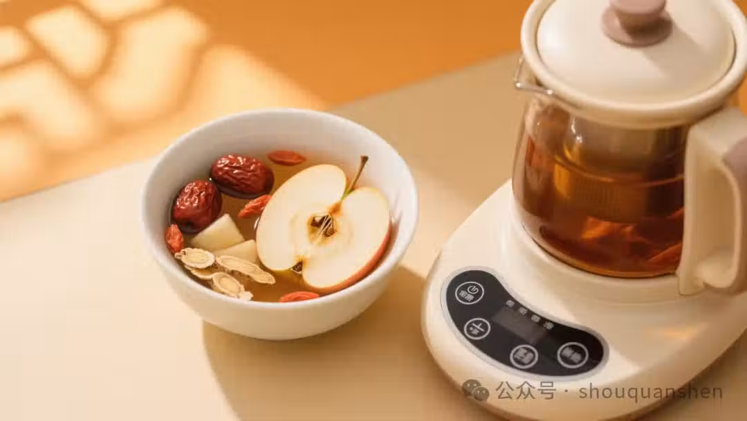 材料:蘋果1個(切塊)、山楂5片、陳皮1朵、茯苓10克