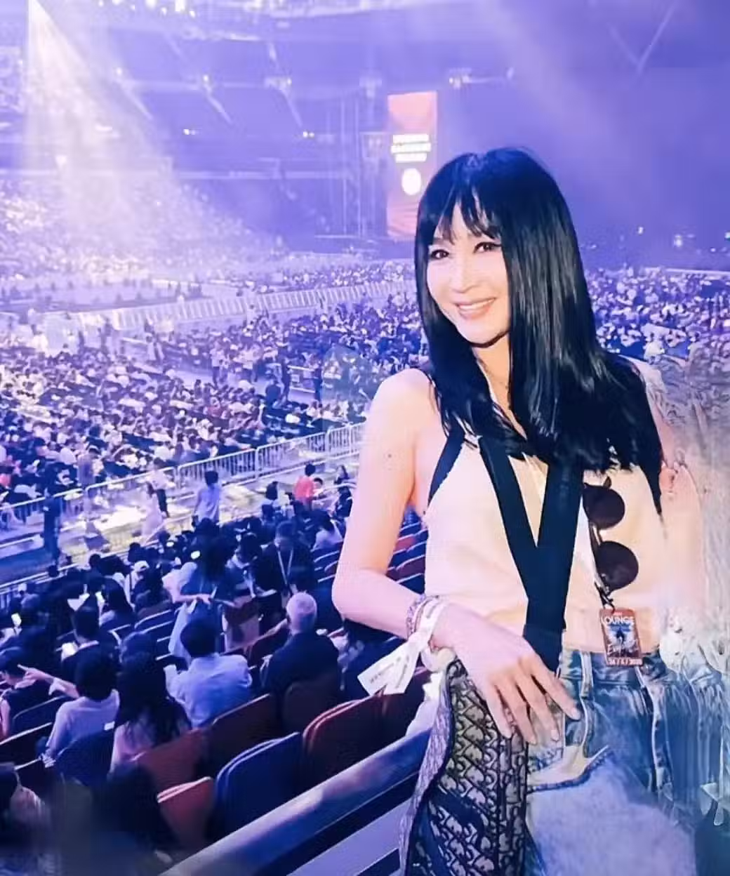 59歲溫碧霞在香港,去看謝霆鋒演唱會,換了新髮型,打扮一言難盡