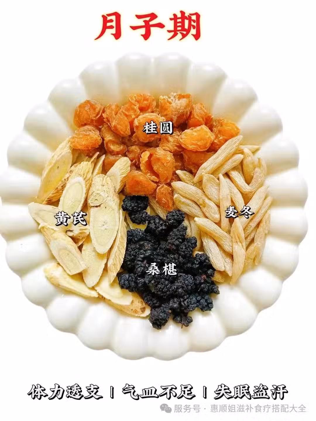 材料:黃芪10克、桑椹5克、桂圓5顆、麥冬5克