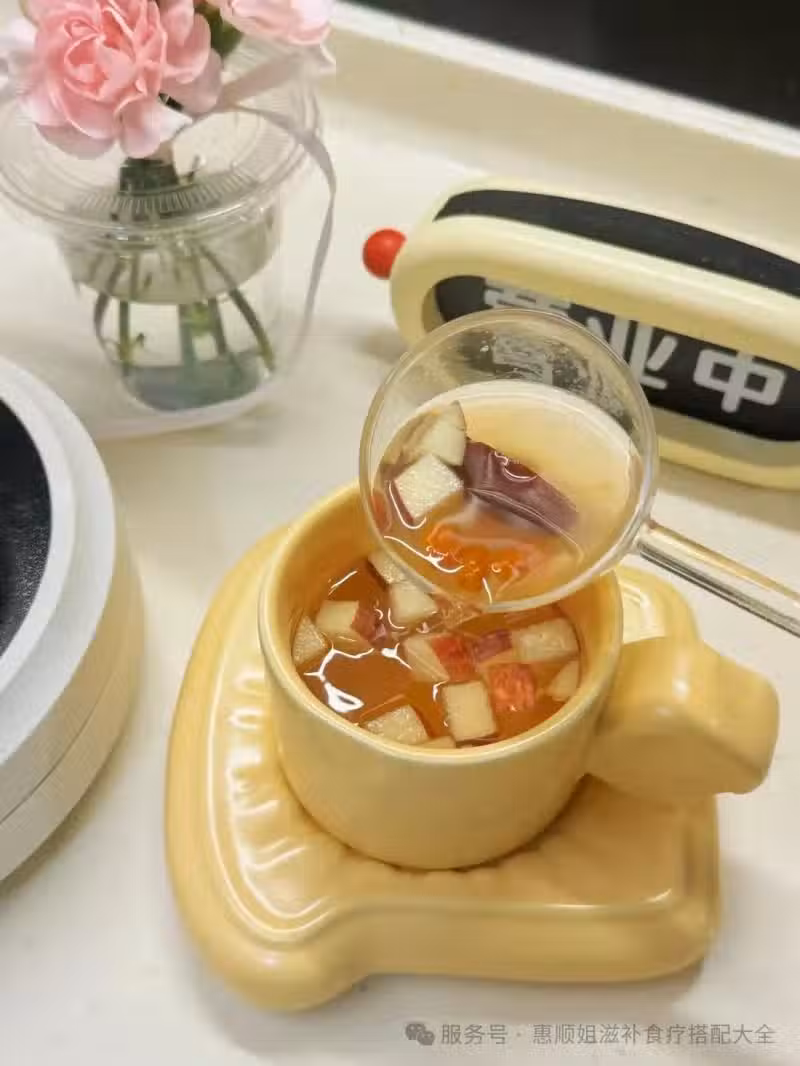 由於我不停地吃「蒸蘋果水」,導致臉蛋越來越紅潤透亮