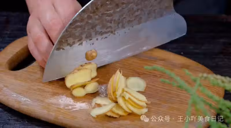 切片備用:把洗凈的生薑切成薄薄的片,切好後放進碗中備用。生薑性溫,具有解表散寒、溫中止嘔、化痰止咳等功效,與車前草和紅棗搭配,能夠起到平衡寒熱的作用。