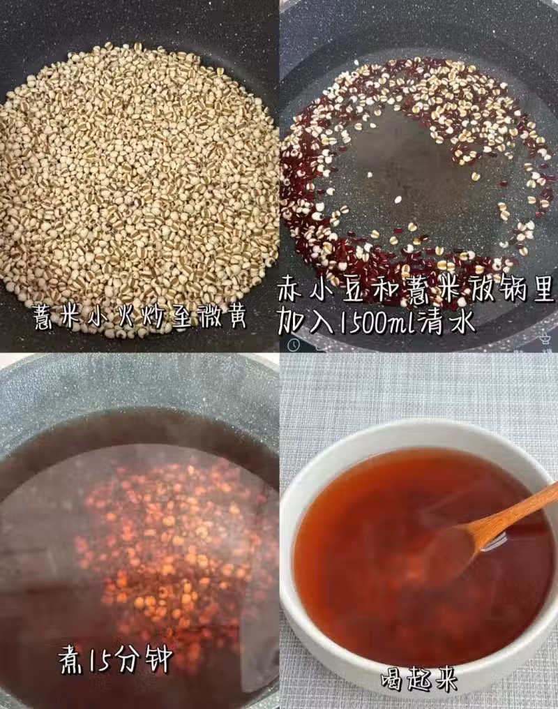 可以把這個水當開水喝。也可以煮到薏仁和赤小豆軟爛,加點糖,煮成糖水喝。