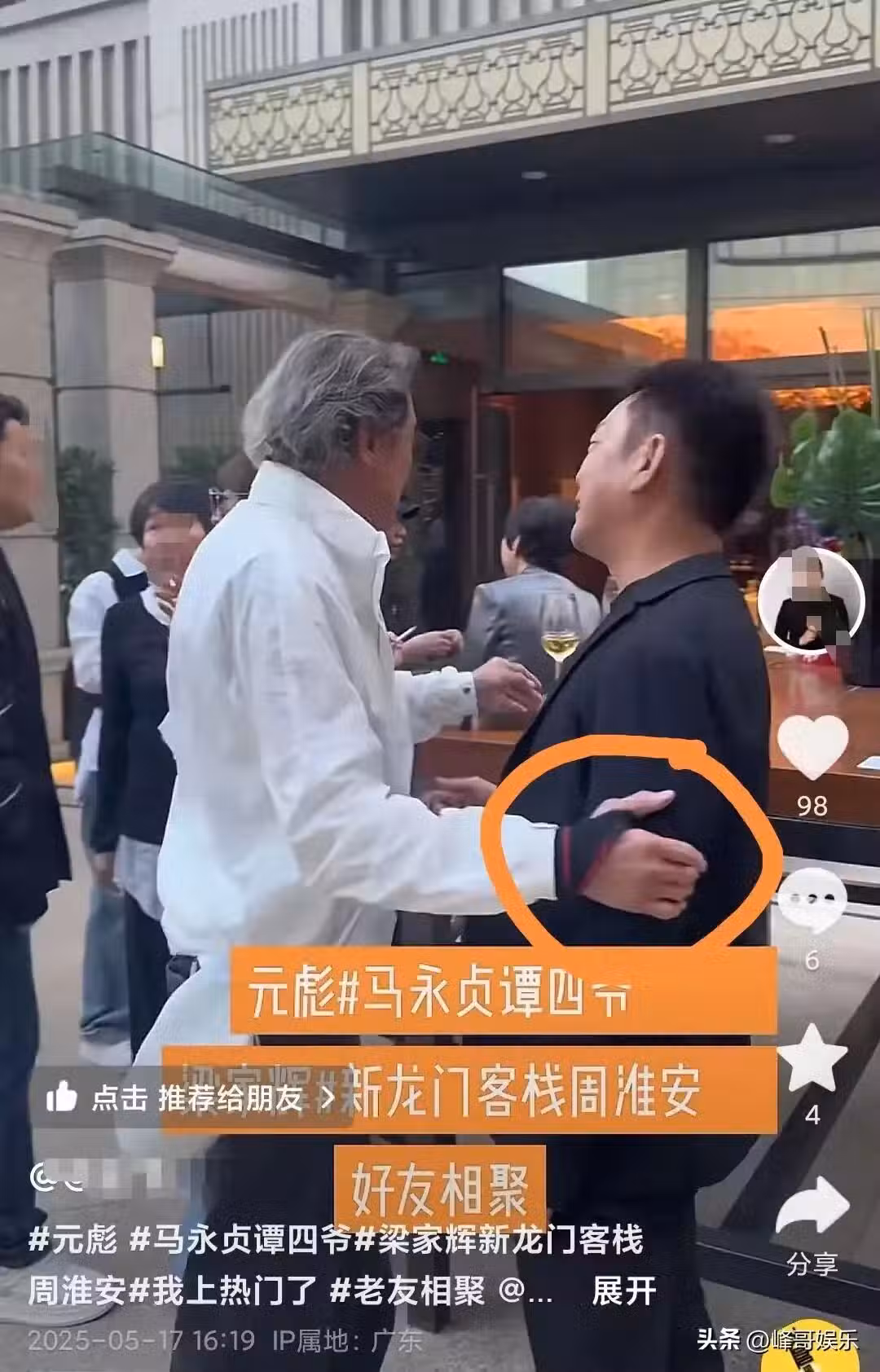 5月17日,元彪經紀人公布一則聚會視頻,此事於全網引發軒然大波。元彪身著筆挺黑色西裝,身姿挺拔似蒼松。梁家輝白髮蒼蒼,盡顯老態。二人同框,恰似隔代之人。