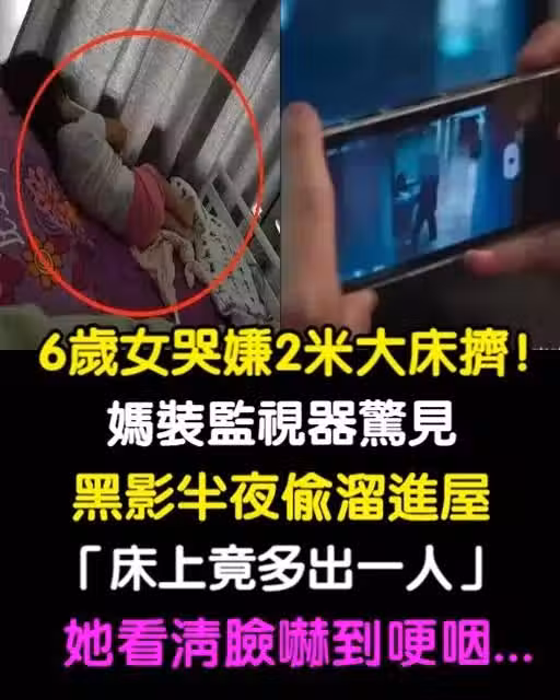 6歲女哭嫌2米大床擠!媽裝監視器驚見,黑影半夜偷溜進屋「床上竟多出一人」,她看清臉嚇到哽咽...