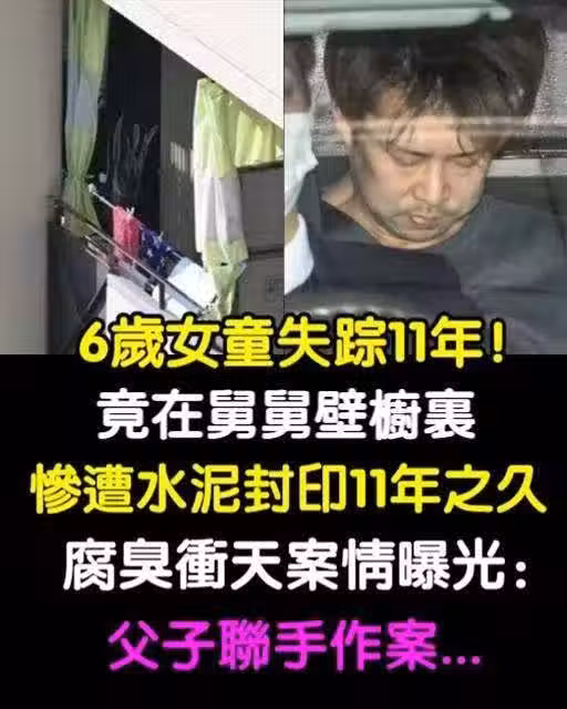 6歲女童失蹤11年!竟在舅舅壁櫥里「慘遭水泥封印」「11年之久」腐臭沖天案情曝光:父子聯手作案!