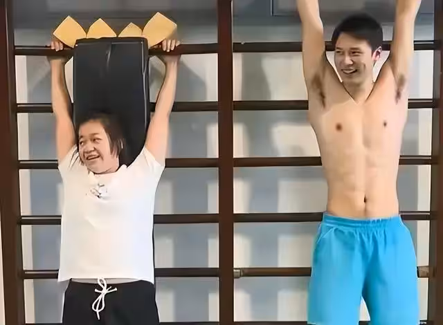 她的雙腿綁著彈力帶,用盡力氣做完了兩個動作,人就癱坐在地上了。然後她笑著說拉不起來了,走一個給大家瞧一瞧……這股勁,和賽場上那個跳水機器,完全就是兩個人。