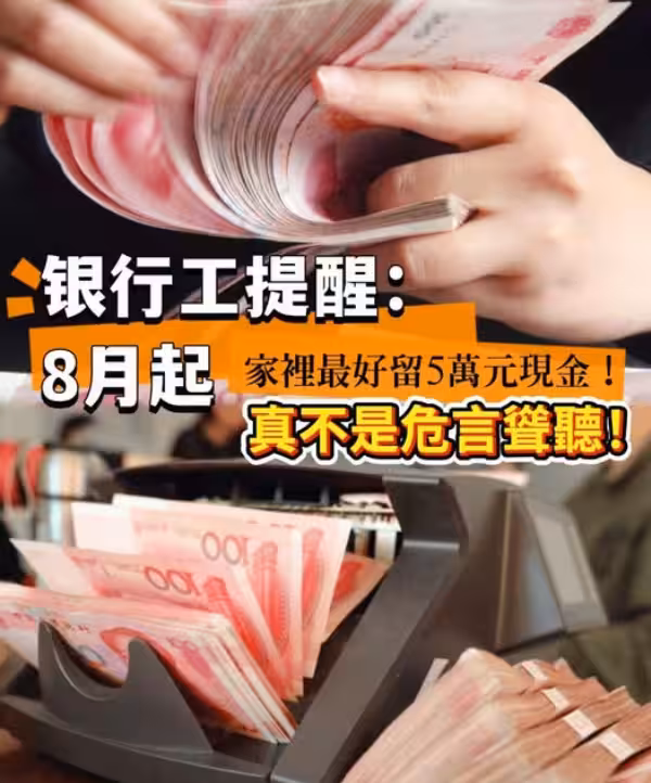 銀行員工提醒:8月起,家裡最好留5萬元現金!真不是危言聳聽!