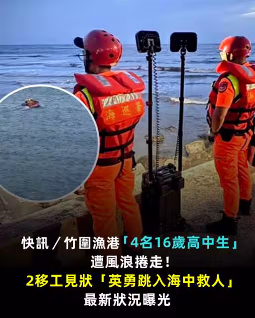快訊/竹圍漁港「4名16歲高中生」遭風浪捲走!2移工見狀「英勇跳入海中救人」最新狀況曝光
