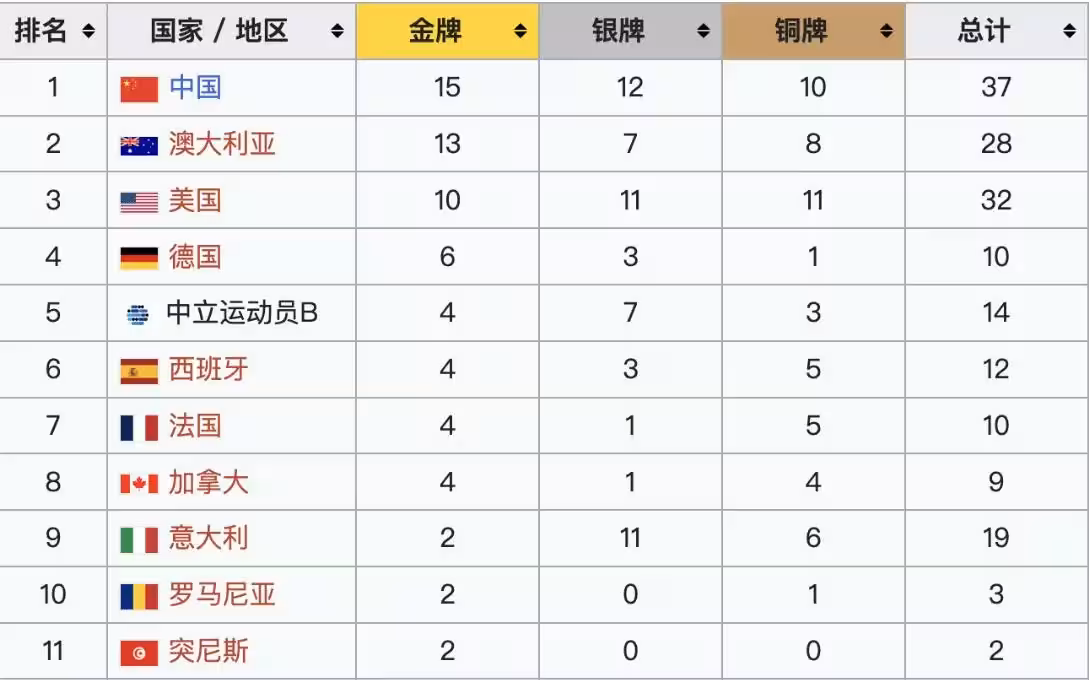 泳聯世錦賽最終獎牌榜:澳大利亞13金,美國10金,中國令人意外