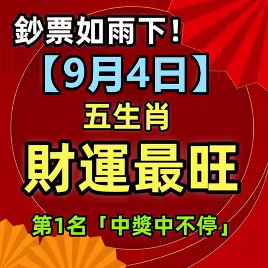 鈔票如雨下!【9月4日】五生肖財運最旺,第1名「中獎中不停」!