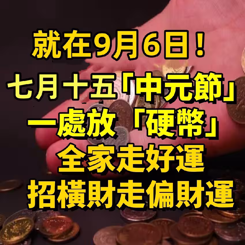 就在今天! 9/6日「中元節」一處放「硬幣」全家走好運,招橫財走好運!
