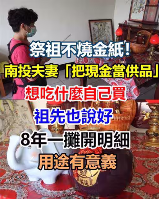 但是,在南投縣卻有一對夫妻不走尋常路,他們會將祭品、金紙換算成現金後,直接擺上貢品桌,反而能夠為家裡人帶來更多好運。
