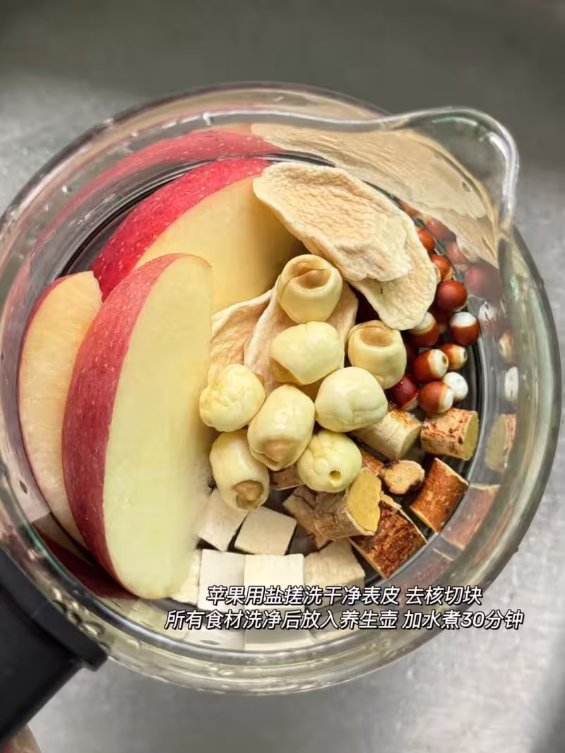 由於我不停地吃「蒸蘋果水」,導致臉蛋越來越紅潤透亮