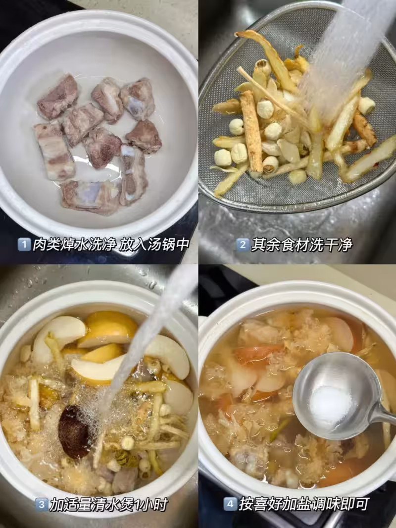 3. 把所有食材一起放入鍋中,加入適量的清水,燉煮1小時。
