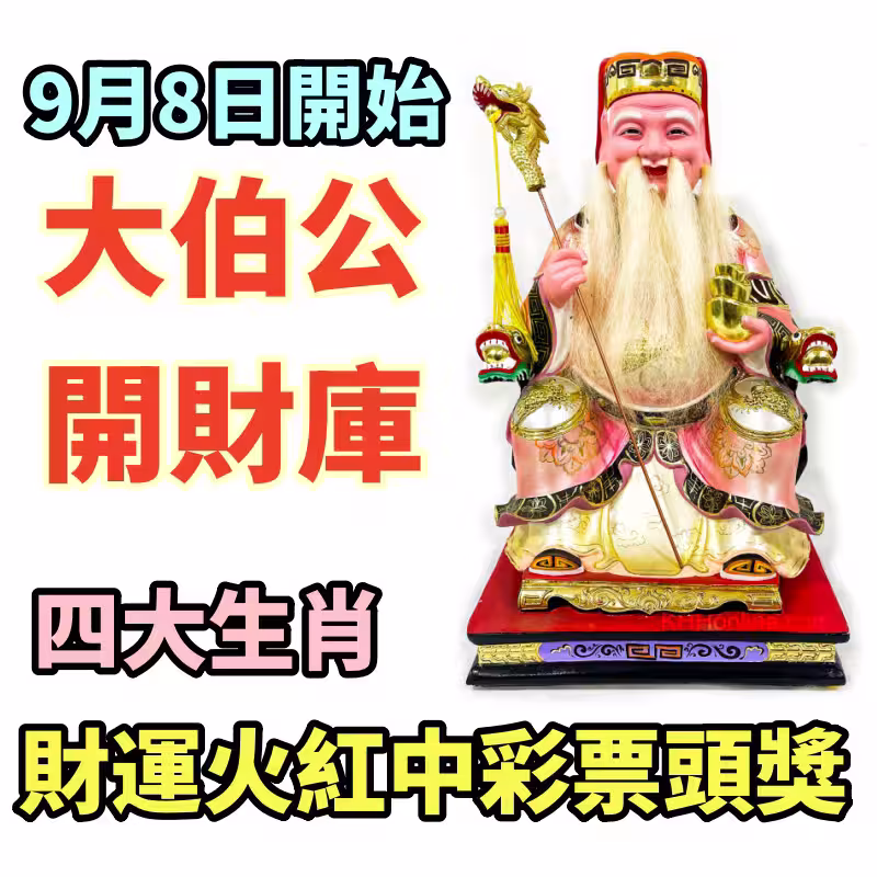 9月8日開始大伯公開財庫,四大生肖財運火紅中彩票頭獎!
