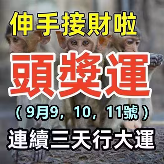 明天 「9月19號」 三生肖 橫財最旺 發久久~