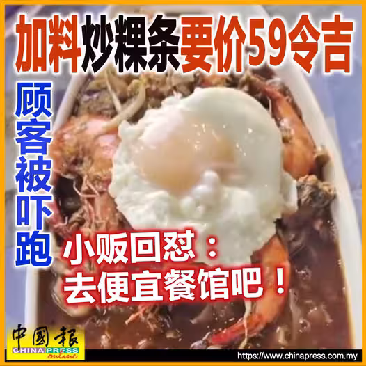 加料炒粿條要價59令吉 顧客被嚇跑 小販回懟: 去便宜餐館吧!