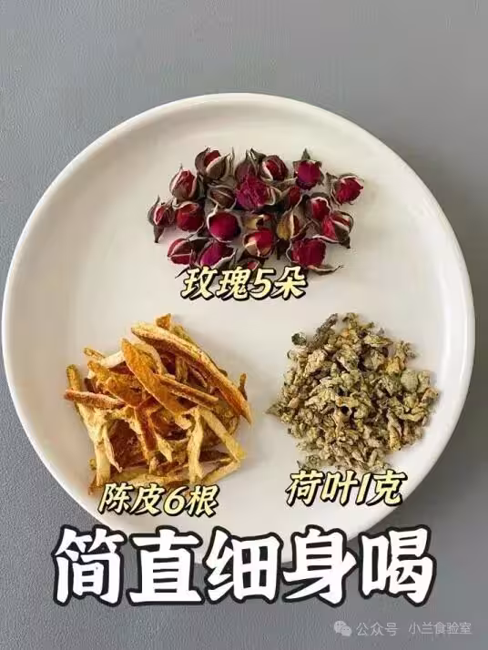 ▫️配方:玫瑰5朵(約1.5克)+陳皮6根(約2克)+荷葉1克