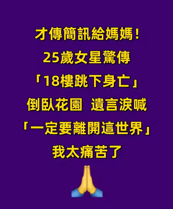 才傳簡訊給媽媽!25歲女星驚傳「18樓跳下身亡」倒臥花園 遺言淚喊「一定要離開這世界」我太痛苦了