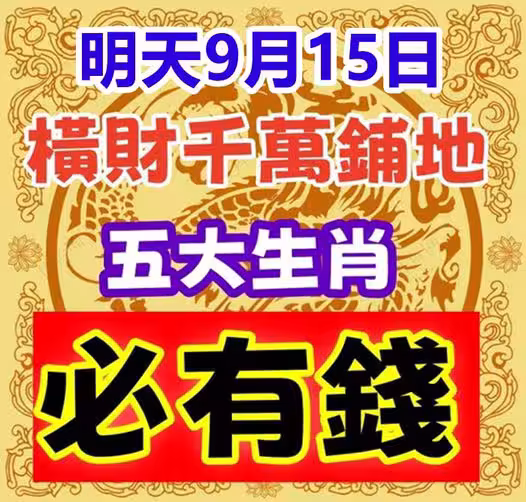 明天9月15日橫財千萬鋪地,五大生肖必有錢