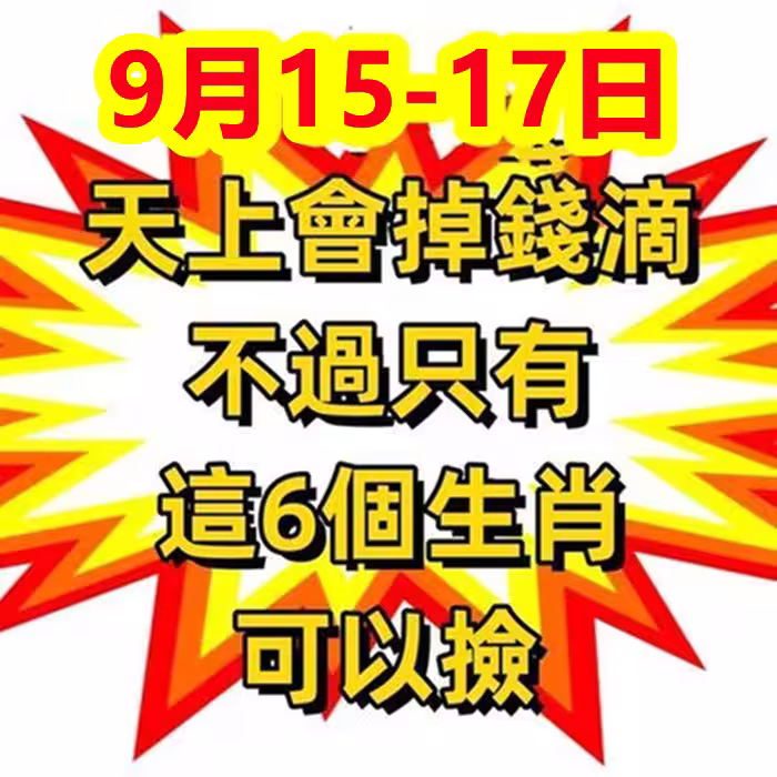 9月15~17日天上會掉錢滴,不過只有這6個生肖可以撿