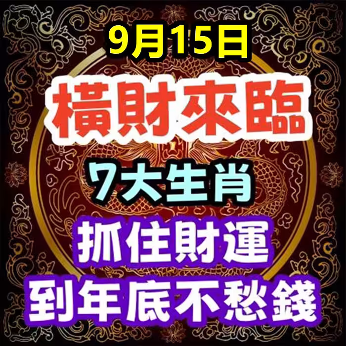9月15日橫財來臨,7大生肖抓住財運,到年底不愁錢!