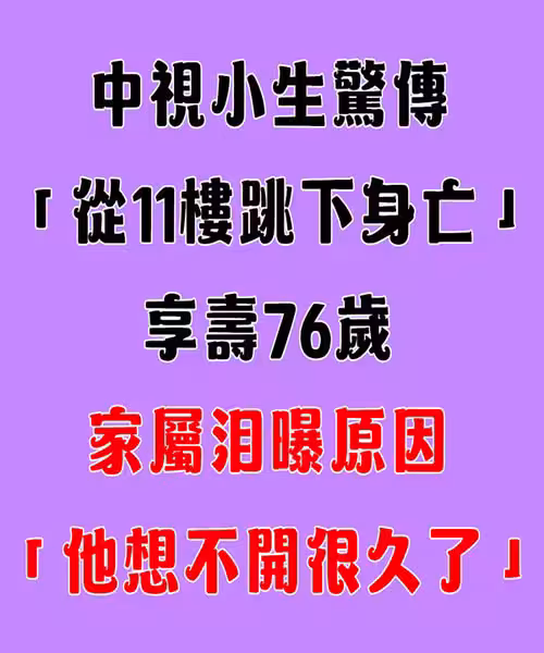 中視小生驚傳「從11樓跳下身亡」享壽76歲!