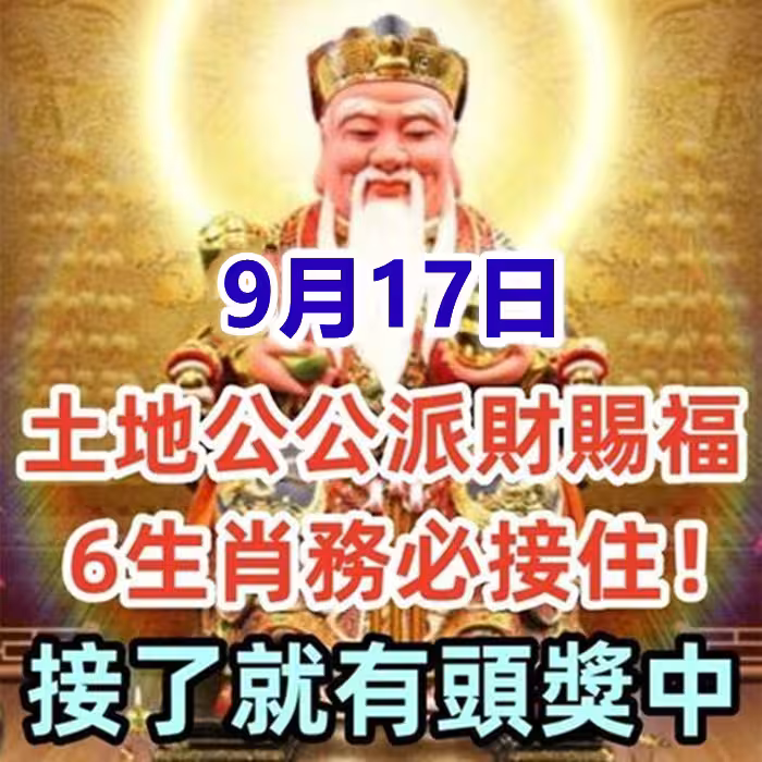 9月17日土地公公,必得財神眷顧,大發橫財,富貴盈門,前程似錦。