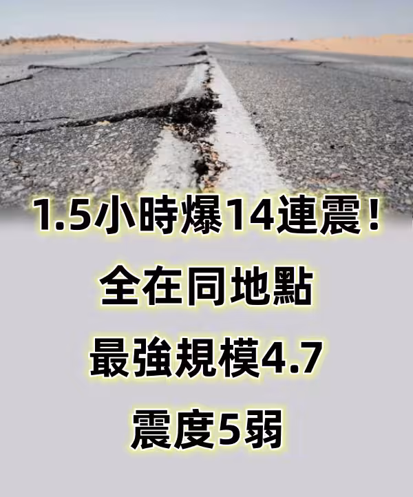 快訊/1.5小時爆14連震!全在同地點 最強規模4.7、震度5弱
