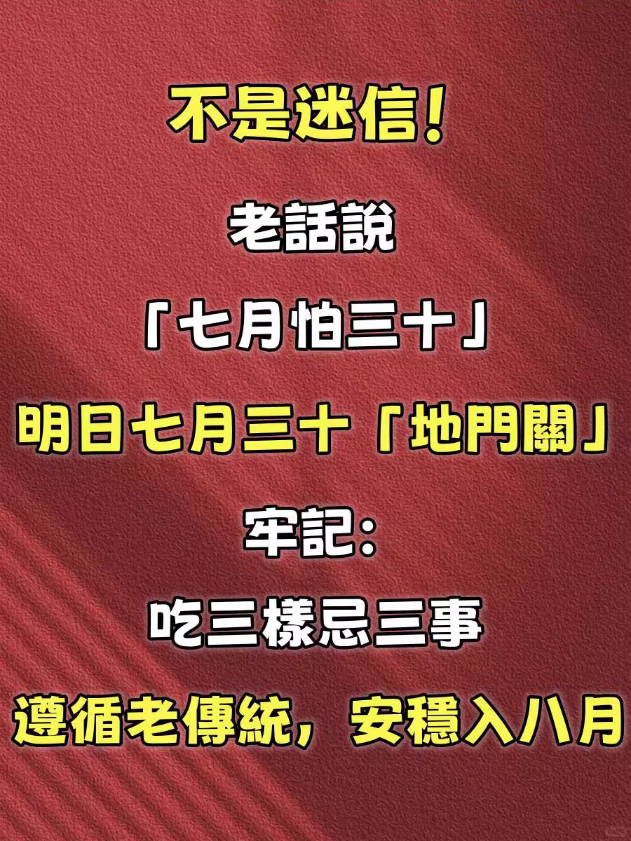 老話說「七月怕三十」,明日七月三十「地門關」 牢記:吃三樣忌三事,遵循老傳統,安穩入八月
