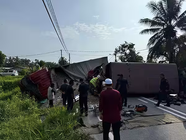 霹靂州安順消拯局於今早8時54分接獲通報,指安順奇古斯路通往雙溪南邦路段發生嚴重車禍,隨即派員趕赴現場展開救援行動。
