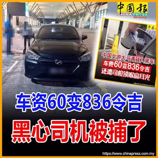 車資60變836令吉 黑心司機被捕了