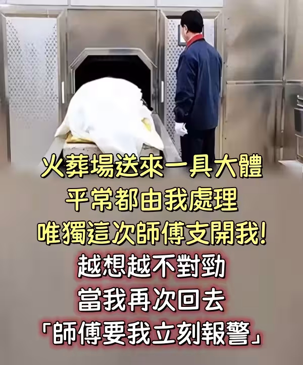 火葬場送來一具大體,平常都由我處理,唯獨這次師傅支開了我!!越想越不對勁,當我再次回去「師傅要我立刻報警」