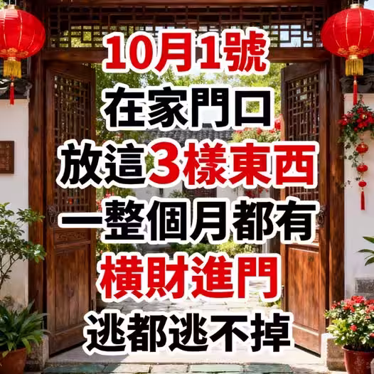 10月1號,在家門口放這3樣東西,一整個月都有橫財進門,逃都逃不掉 !
