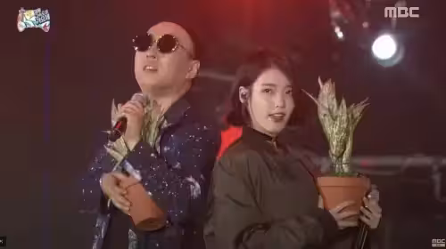 ▲朴明洙(左)IU(右)於2015年合作《Leon》相識。(圖/翻攝自MBCentertainment)