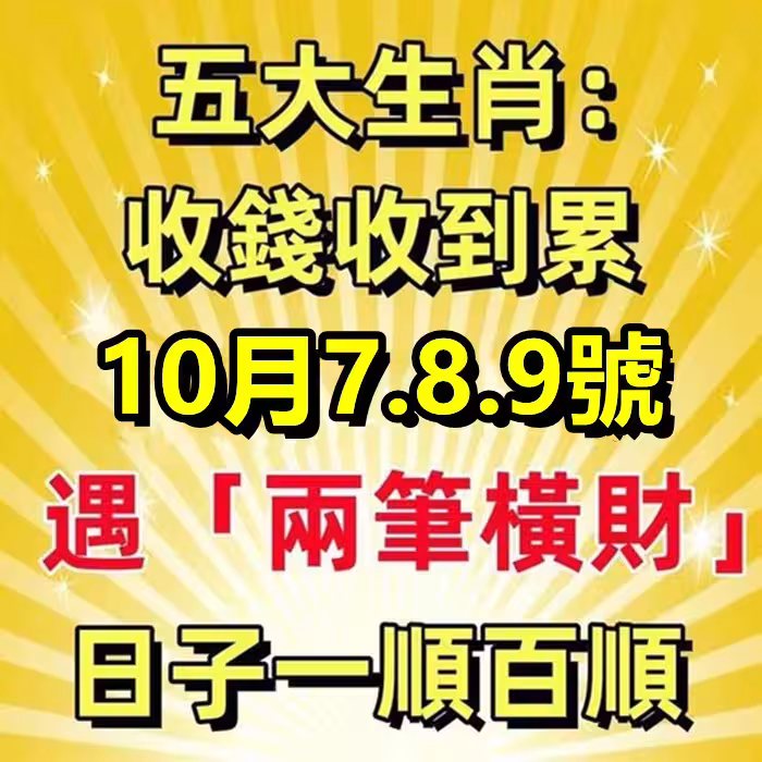 收錢收到累!10月7.8.9號遇「兩筆橫財」五大生肖日子一順百順