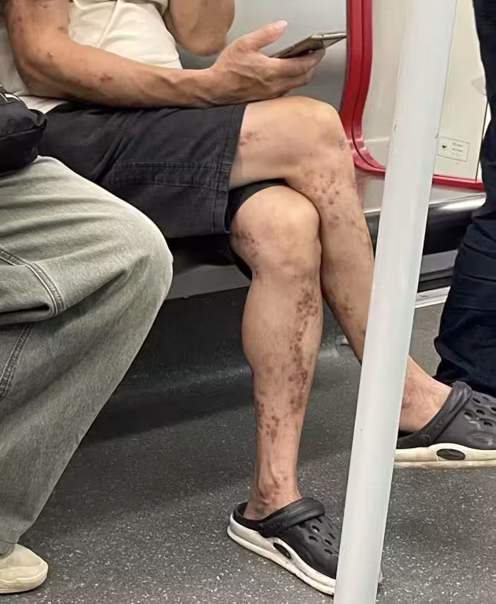 捷運男子「大片紅疹」「手臂爬滿腳踝」乘客嚇到遠離!急PO圖求助,網友炸鍋:他老婆肯定中招了