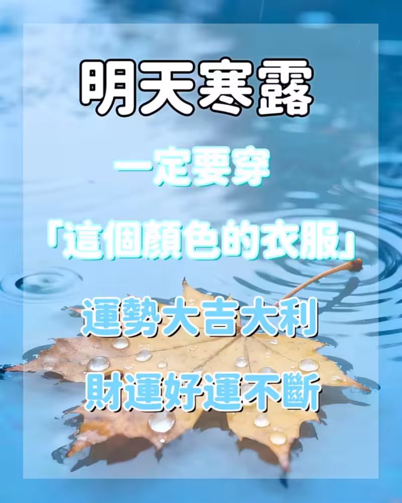 明天寒露,一定要穿「這個顏色的衣服」運勢大吉大利,財運好運不斷!