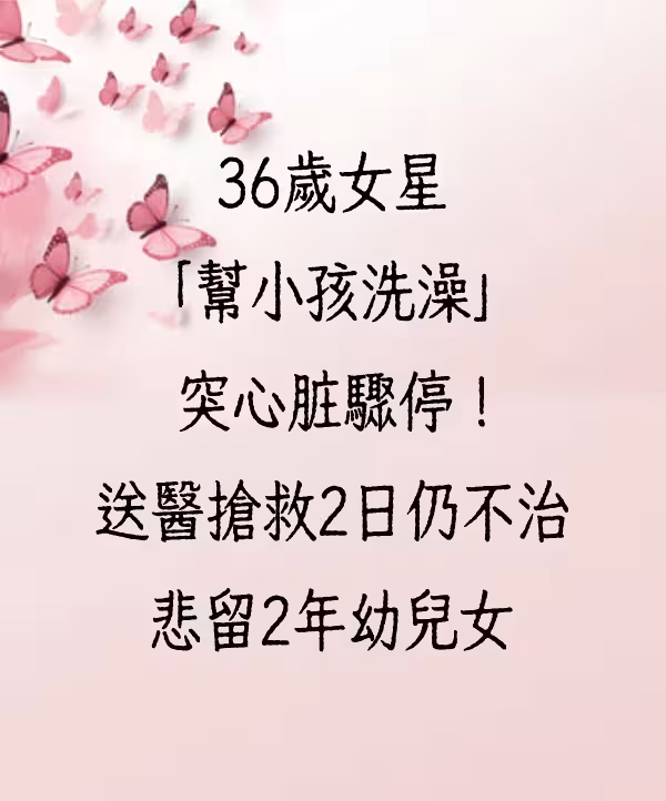 36歲女星 「幫小孩洗澡」突心臟驟停!送醫搶救2日仍不治,悲留2年幼兒女。