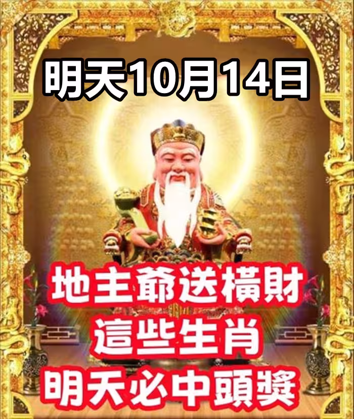 明天10月14日:地主爺送橫財,這些生肖明天必中頭獎