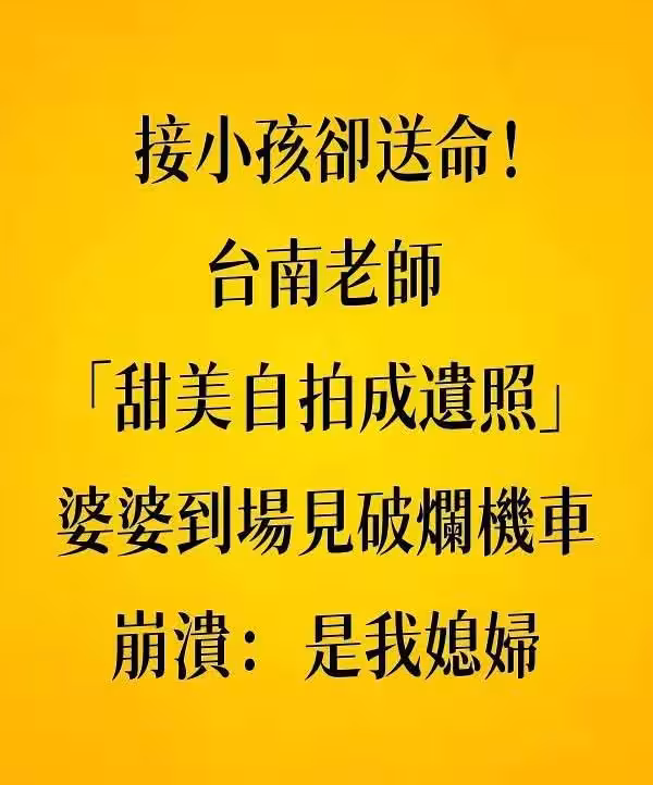 接小孩卻送命!台南老師「甜美自拍成遺照」 婆婆「到場見破爛機車」崩潰:是我媳婦。