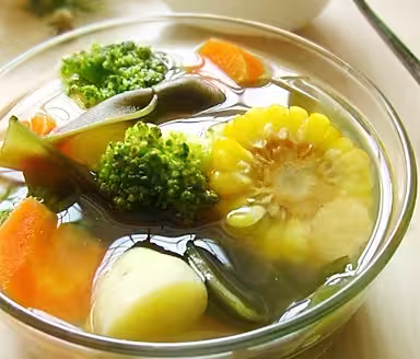 2. 鍋中倒水,放入胡蘿蔔、玉米、土豆、海帶結、黃芪,大火煮開後小火20分鐘;