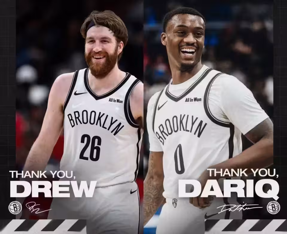 10月14日,籃網隊官方宣布,球隊已裁掉達里克-懷特黑德和德魯-蒂米。球隊已經在社媒上對兩人致謝....